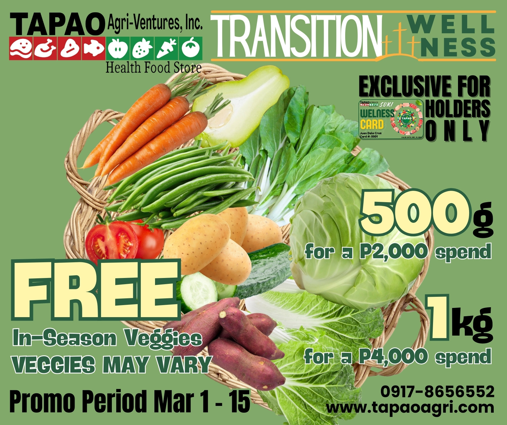 Is Good to be back at Tapao! Get your Free Suki Wellness Card plus a 100 peso welcome back credit to enjoy Delicious & Healthylicious food once again.